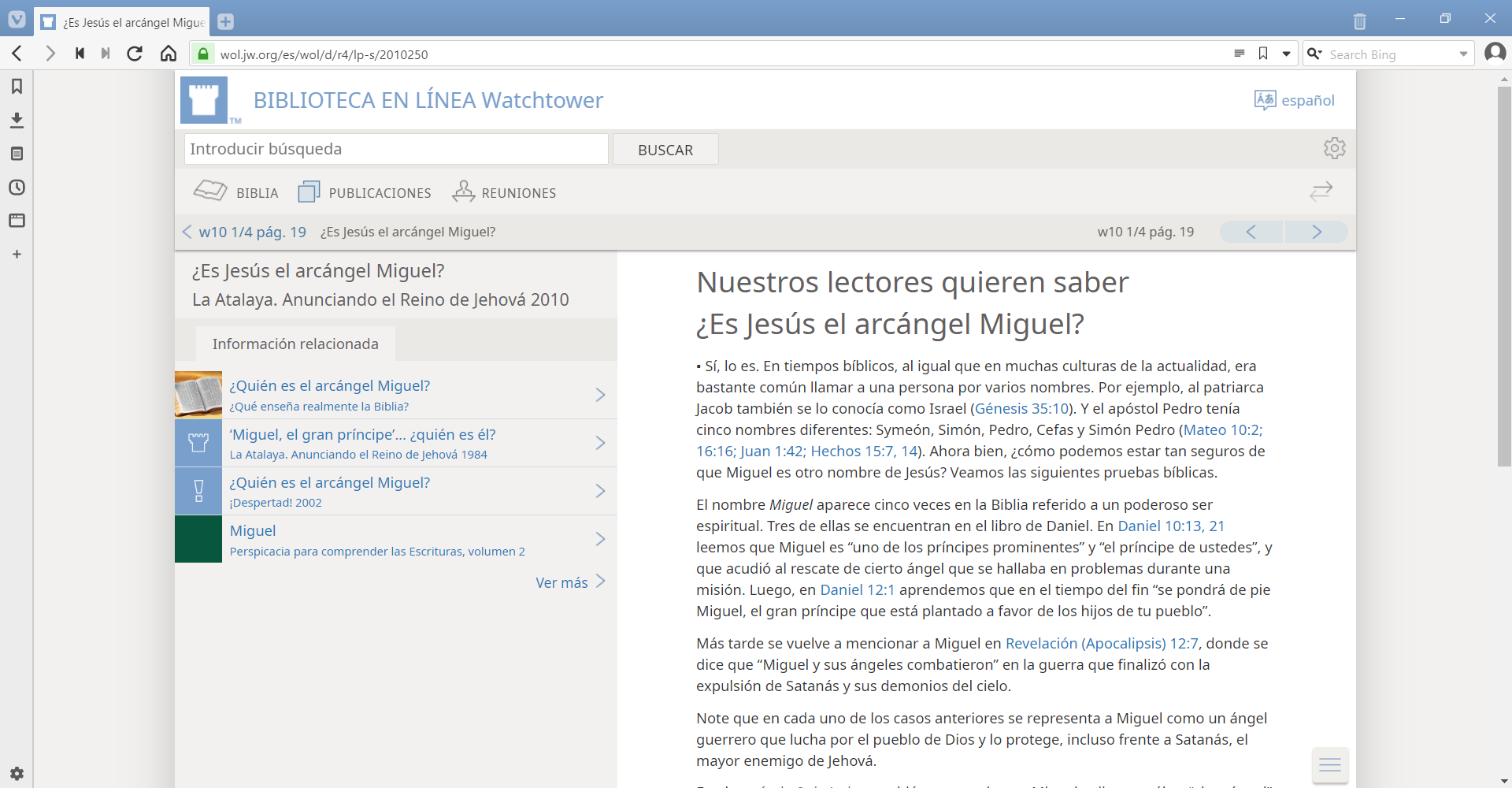 [ii] Ver https://wol.jw.org/es/wol/d/r4/lp-s/2010250 o mi copia aquí. Lo importante es notar que en ningún lugar de la Biblia se enseña que Jesús es el Arcángel Miguel. Sin embargo, la Biblia si menciona clara y directamente que Jesús es Dios (¡esta es precisamente una de las primeras cosas que el Apóstol Juan quiso enfatizar en su Evangelio!), y cada vez que lo hace, los Testigos siempre ponen pretextos para interpretar esta enseñanza central de una forma diferente para que encaje bien con sus doctrinas falsas.